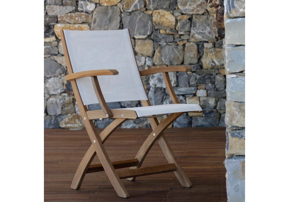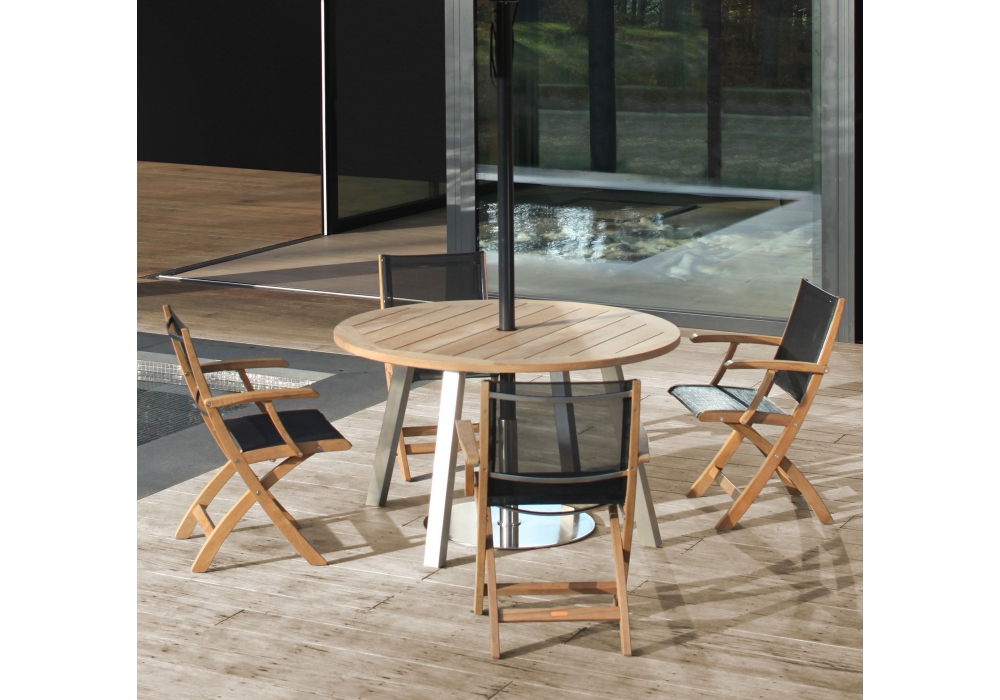 XQT designed by Kris Van Puyvelde for Royal Botania is a foldable chair with teak structure. Upholstery realized in batyline®.