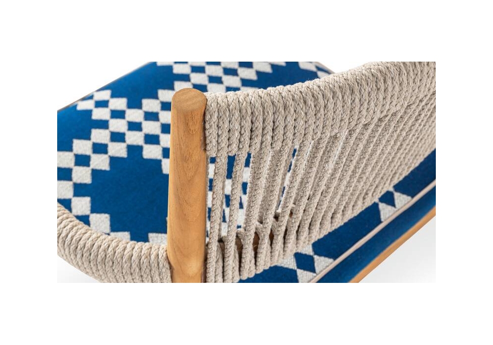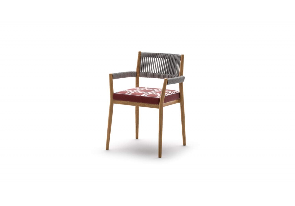 Dine Out designed by Rodolfo Dordoni for Cassina is a chair with structure made of teak wood, backrest and armrests intertwined in Orbettino rope. Seat cushion available in different fabrics.