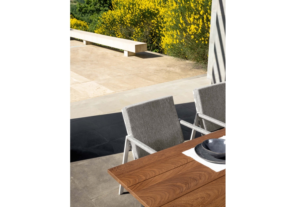 Cottage designed by Ramón Esteve for Talenti is a chair with structure in white powder coated aluminum or graphite. Seat in fabric, resistant to atmospheric agents.