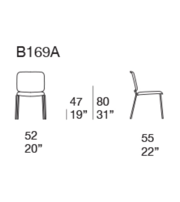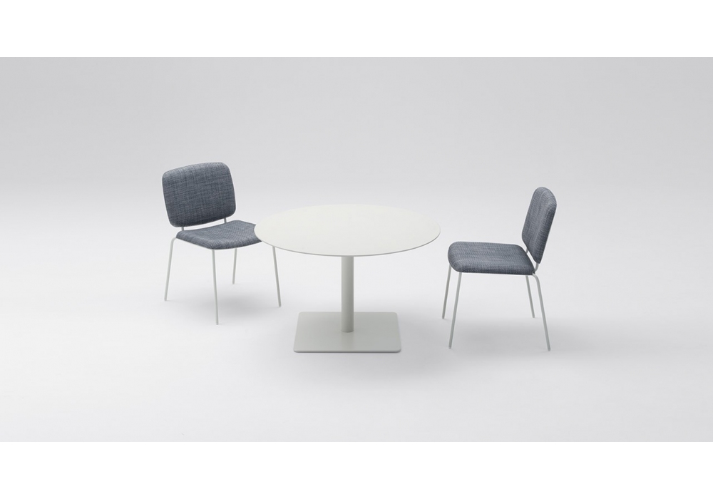 Nina designed by Francesco Rota for Paola Lenti is a chair with structure in matt or glossy painted AISI 316 stainless steel. The load-bearing structural panels are printed in Diade with a white, gray, green or blue base combined with the Maris fabric upholstery, available in different colors.