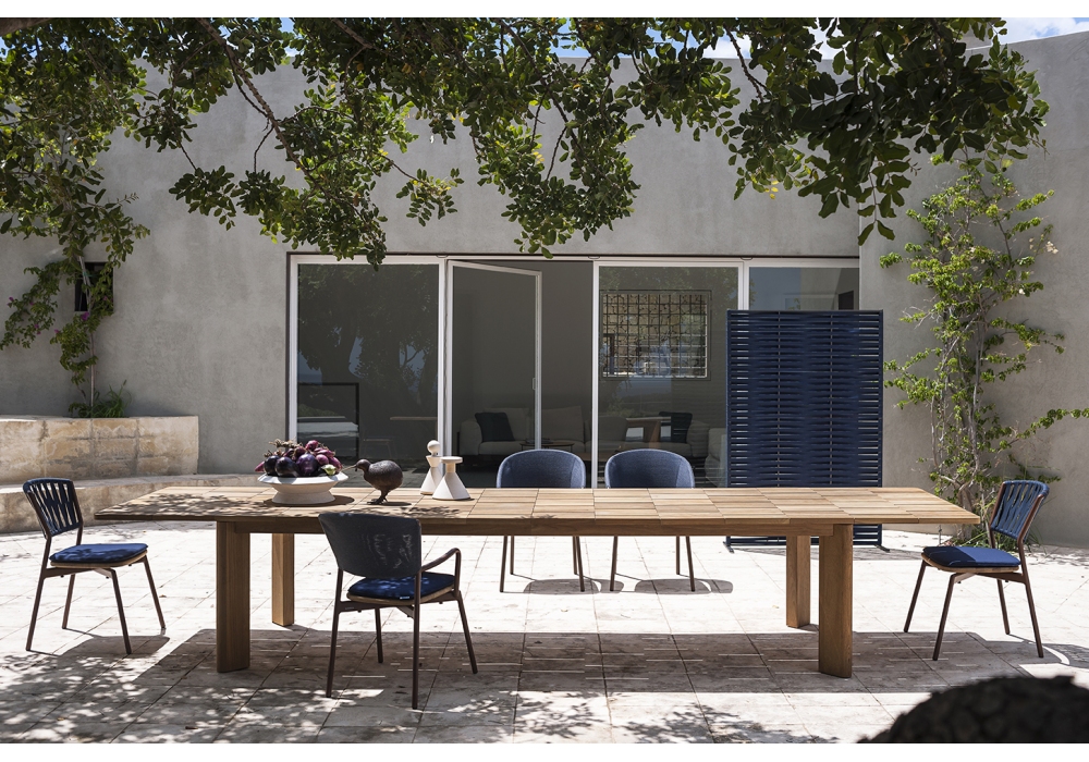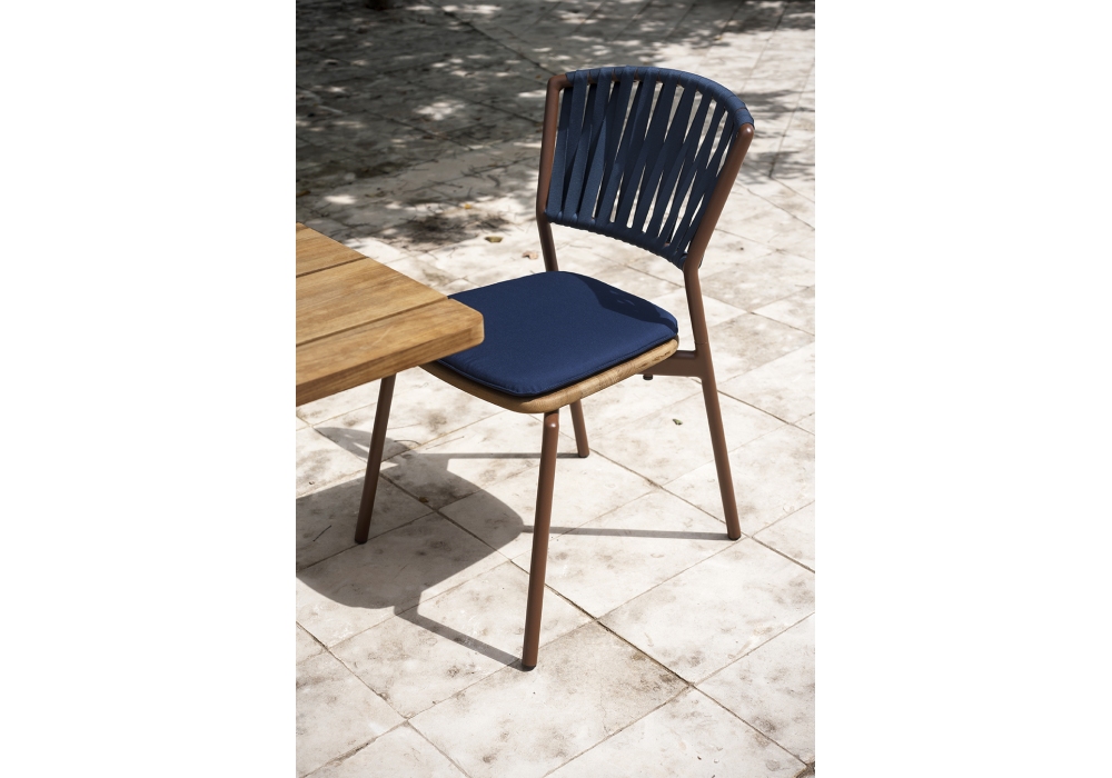 Piper 120 designed by Rodolfo Dordoni for Roda is a chair made of powder coated tubular aluminium. Polyester belt back and teak or polyurethane resin seat. It is available in different finishes and sizes.
