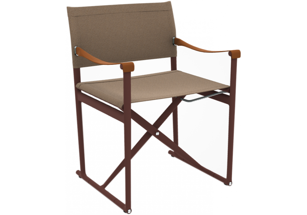 Mirto MI59N designed by Antonio Citterio for B&B Italia Outdoor is a folding chair with natural-colored armrests. Sage or clay-painted aluminum structure, fabric seat and backrest.