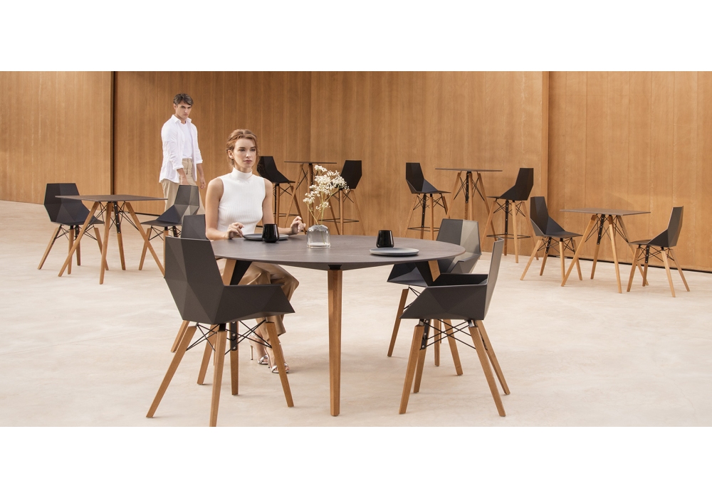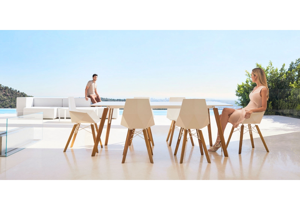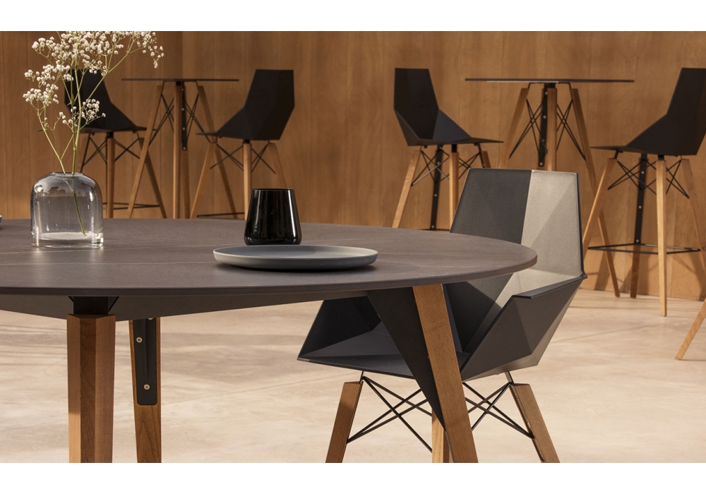Faz Wood designed by Ramón Esteve for Vondom is a chair made with beech wood legs. Available with or without armrests and in different finishes. Please avoid direct exposure to sun and rain.