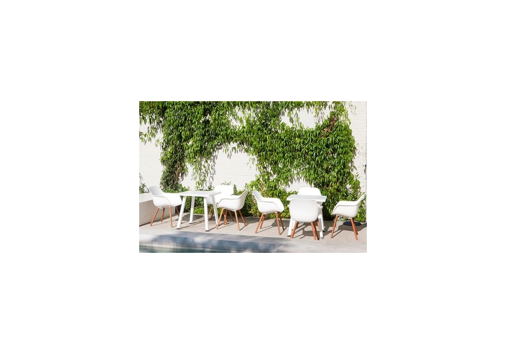 Captain's Chair designed by Metrica for Extremis is a chair made with reinforced polypropylene shell, wooden legs and steel structure. Available in different finishes and 2 dimensions. Seat cushion on request.