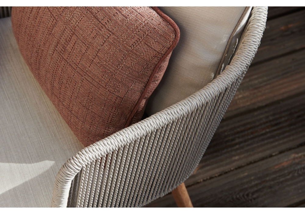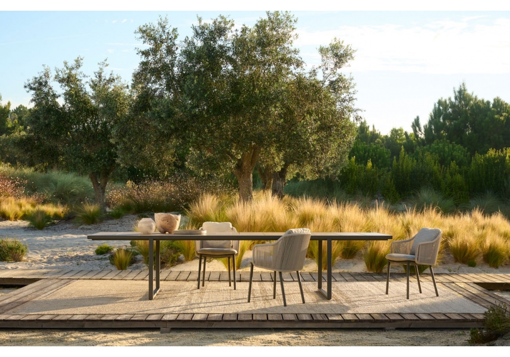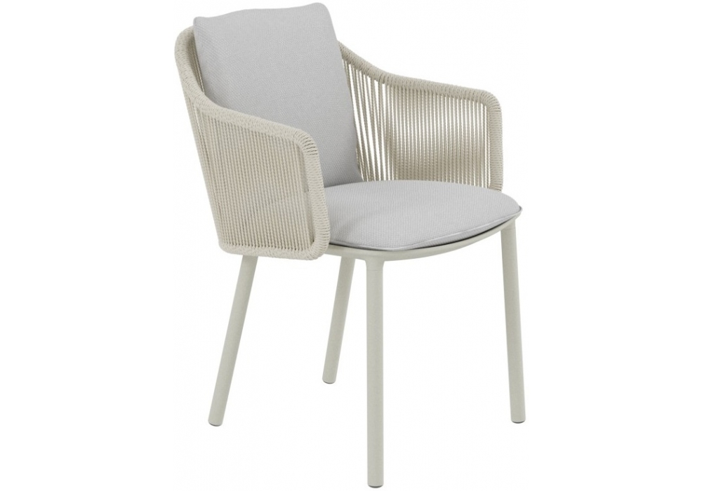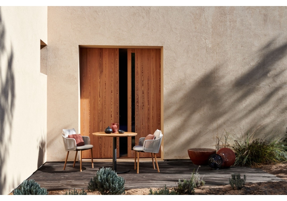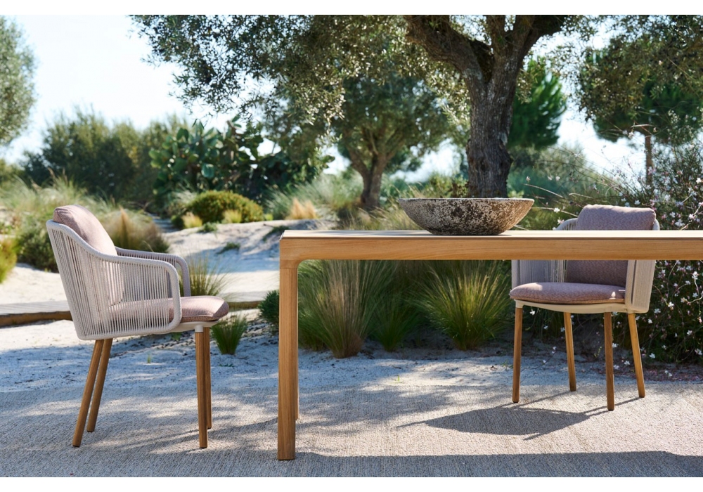 Senja designed by Studio Segers for Tribù is a chair with backrest in linen-colored Canax, the legs in powder-coated aluminum or in teak, and the seat shell in painted aluminum. Available in different colors.