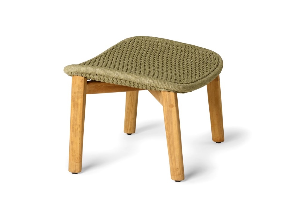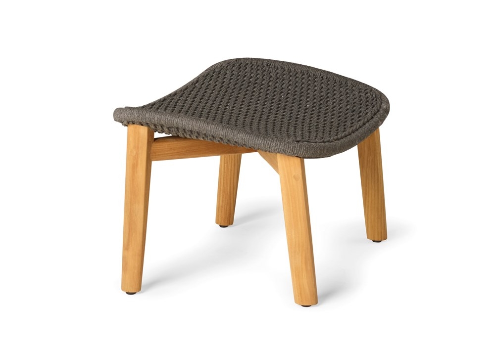 Elio designed by Yabu Pushelberg for Tribù is a footstool with structure in teak and seat in woven tricord (polyolefin), available in different colors. The seat cushion is made with various coverings.