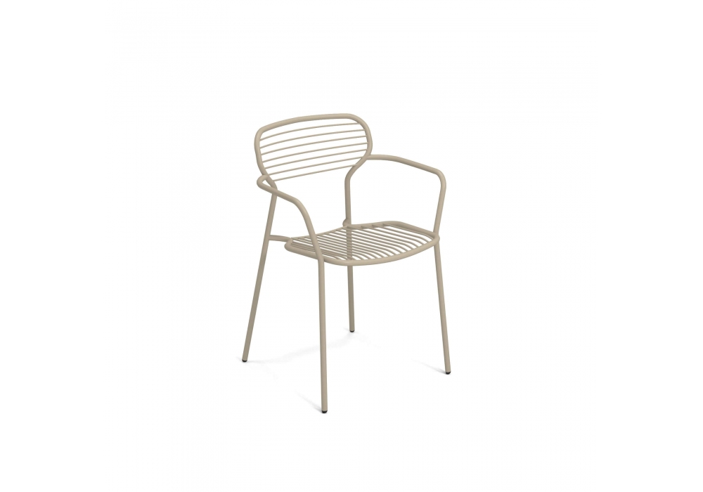 Apero designed by Martin Drechsel for Emu is a metal armchair, Its minimal and graphic appearance allows it to adapt discreetly to any type of environment and style. Available in different finishes.