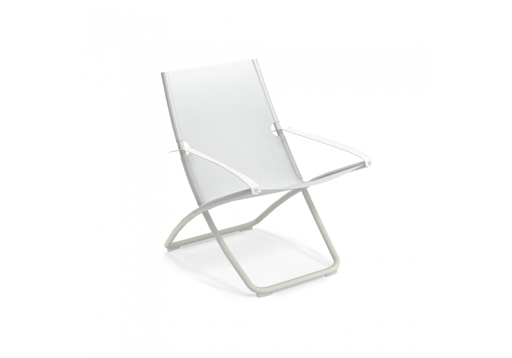 Snooze designed by Chiaramonte / Marin for EMU is a garden deckchair with large dimensions and a sinuous and enveloping shape. Through a simple armrest adjustment mechanism, the seat can assume two positions, for reading and for resting. Available in different finishes.