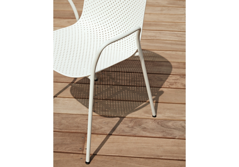 13Eighty designed by Scholten & Baijings for Hay is an outdoor chair with injection molded polypropylene shell with 20% glass fiber powder coated and 4 legs base with or without armrests. Available in different versions and finishes.
