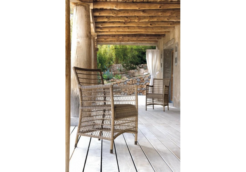 Malibu designed by Stephane De Winter for Manutti is an outdoor armchair with structure in woven wicker. Upholstery available in different finishes.