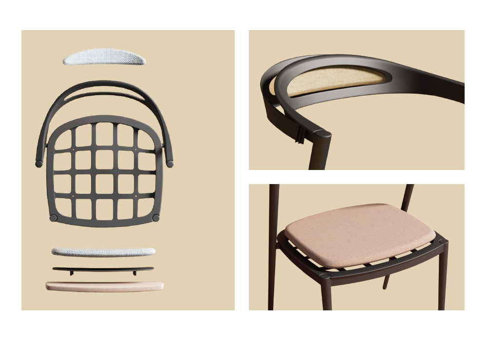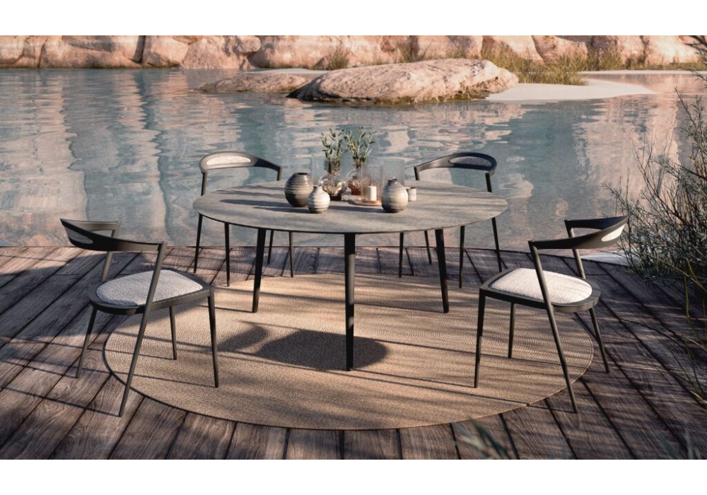 Styletto designed by Kris Van Puyvelde for Royal Botania is an outdoor chair with aluminum structure. The upholstery of the seat and back cushions are available in different finishes.