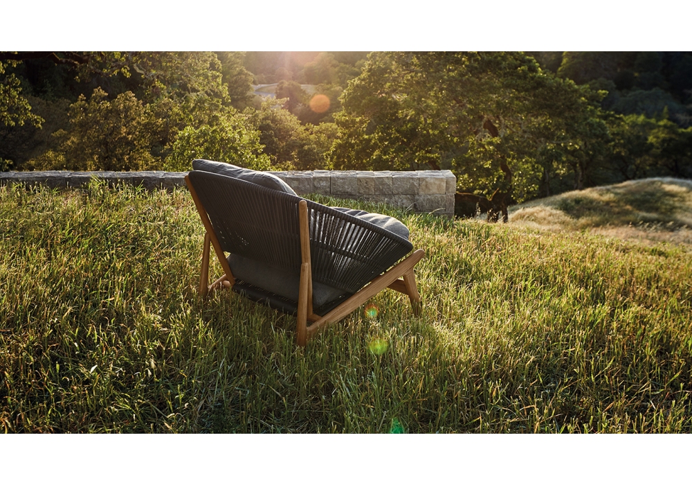 Bora designed by Henrik Pedersen for Gloster is an outdoor armchair with structure in teak and seat and back in wicker. Upholstery available in different finishes.