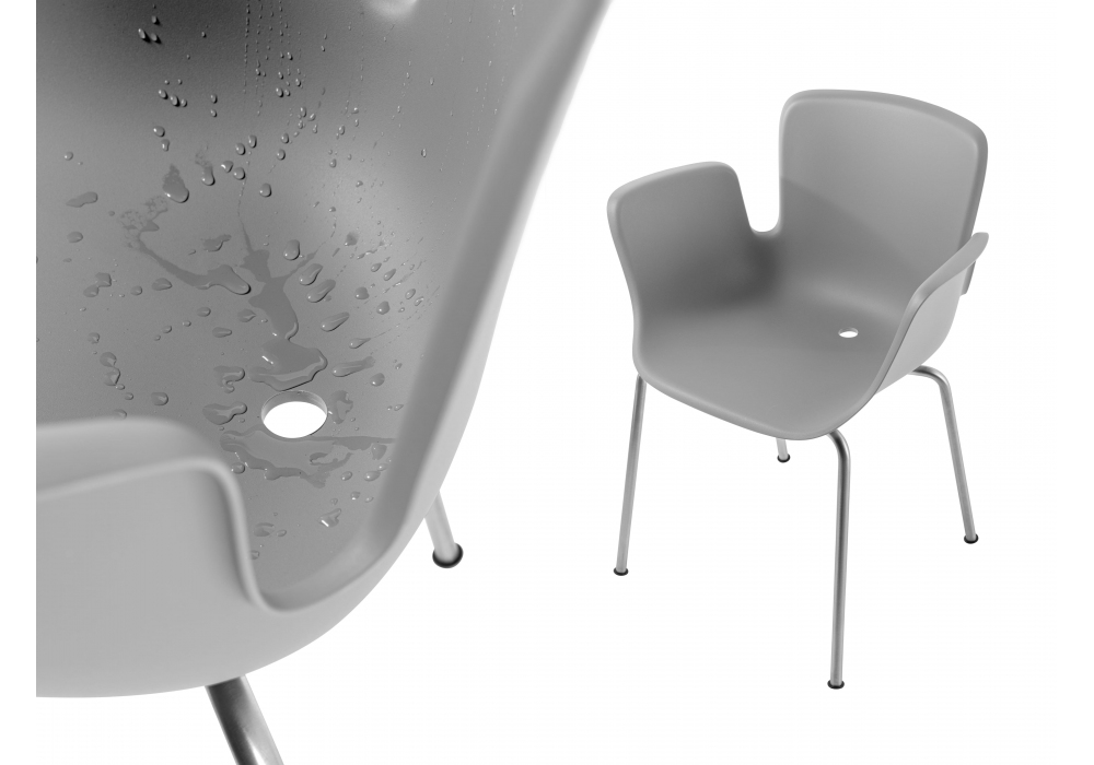 Juli Re-Plastic Lido designed by Werner Aisslinger for Cappellini is a small armchair with armrests suitable for outdoor use, composed of a shell made of recycled and recyclable glass fiber reinforced polypropylene and base in AISI 316 stainless steel.