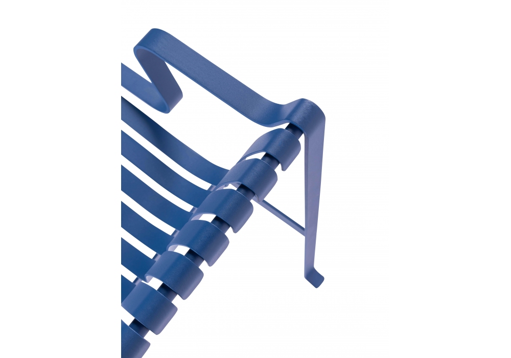 Vendicari Lido designed by Jangir Maddadi for Cappellini is an outdoor chair with armrests made with flat aluminum profiles and support rods. Embossed powder coating. Seat cushion in polyester wadding with water-repellent lining.