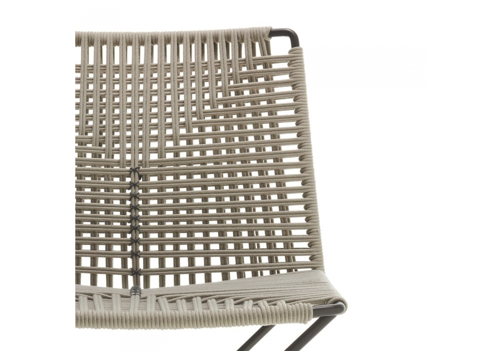 Neil Twist Ecrù designed by Jean Marie Massaud for MDF Italia is a chair with supporting structure made of matt lead black or white painted steel, woven with matt ecru gray polyester rope.