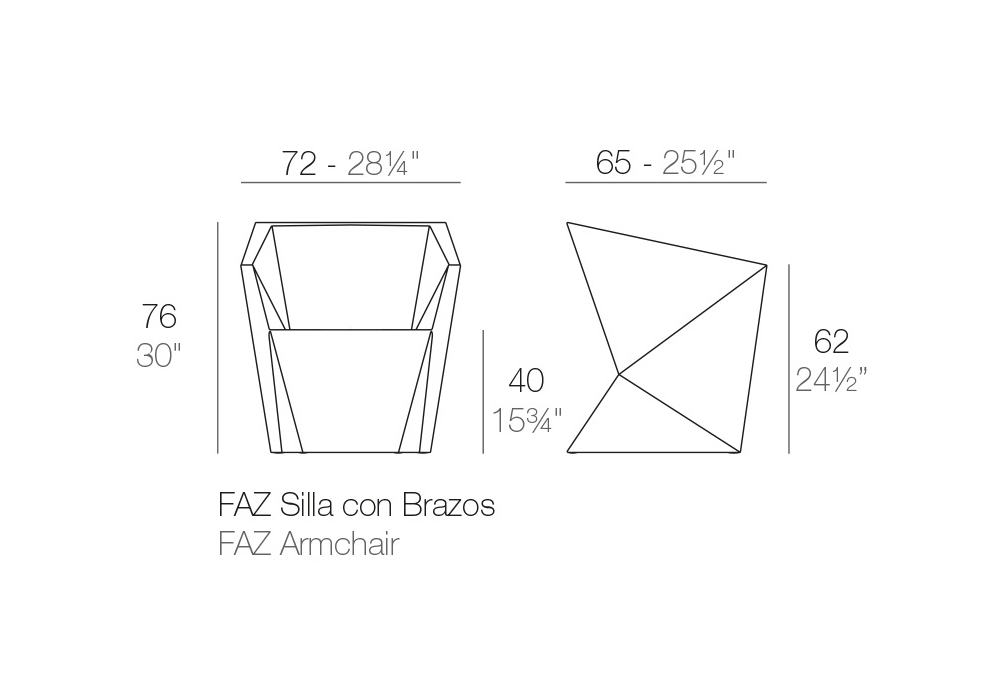 Faz designed by Ramón Esteve for Vondom is a small armchair made of polyethylene resin by rotational molding. 100% recyclable. Suitable for indoor and outdoor use. Available in different finishes. Seat cushion on request.