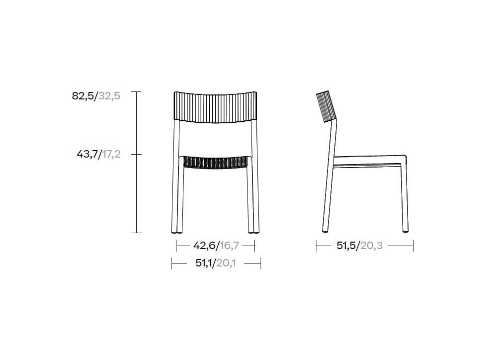 Passage Outdoor designed by Ronan Bouroullec for Kettal is an outdoor chair with a metal frame in a glossy or textured finish. The seat is made of aluminum, papyrus or rope in the same color as the frame.