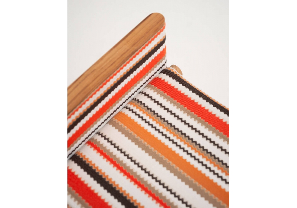 Orson designed by Gordon Guillaumier for Roda is an outdoor chair that is part of a collection in collaboration with Missoni. It reinterprets the classic director's chair but in a contemporary way. The chair is covered in acrylic yarn with different jacquard processes. Available in different finishes.