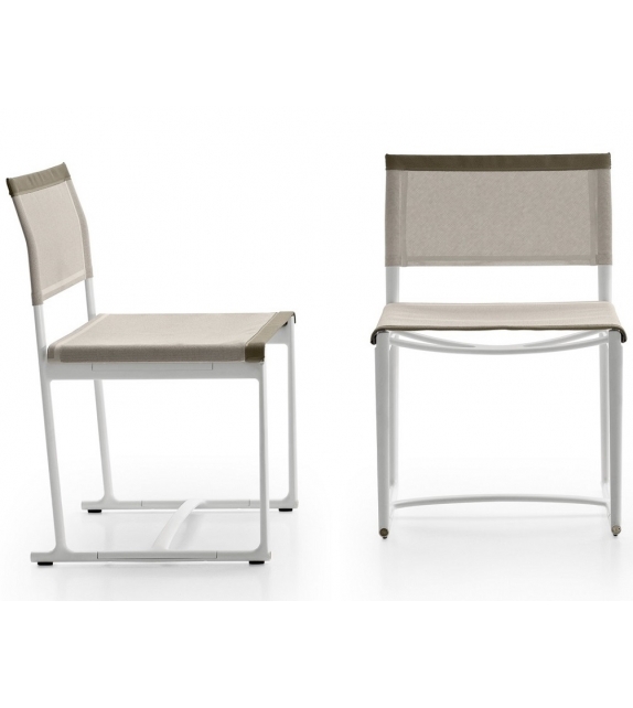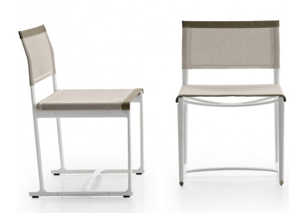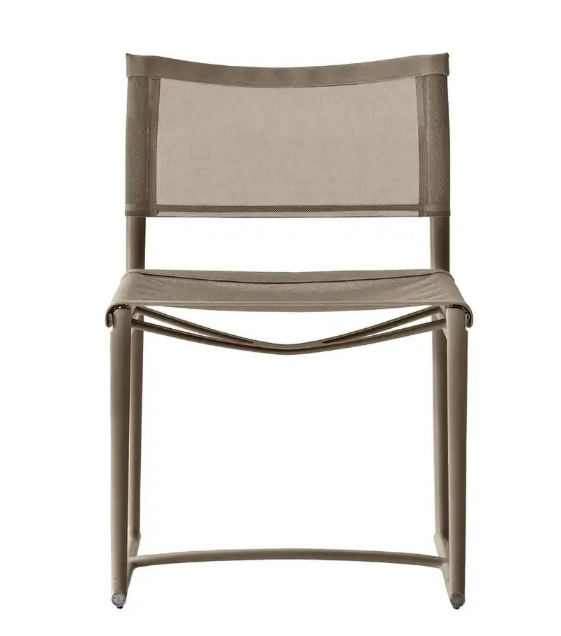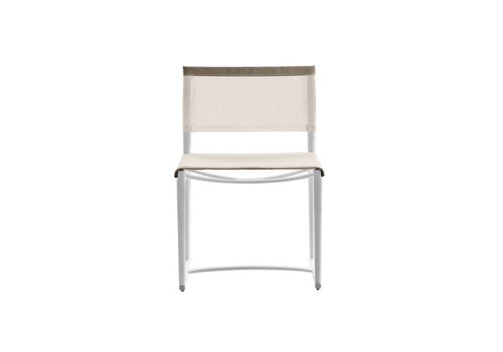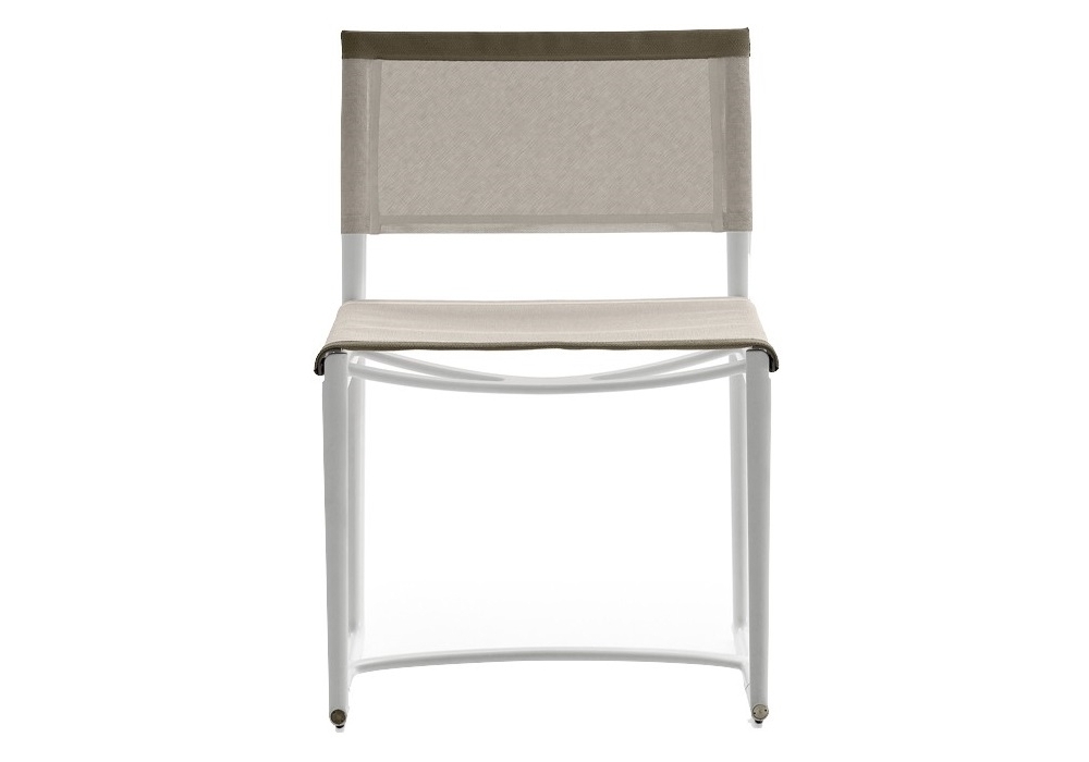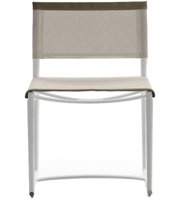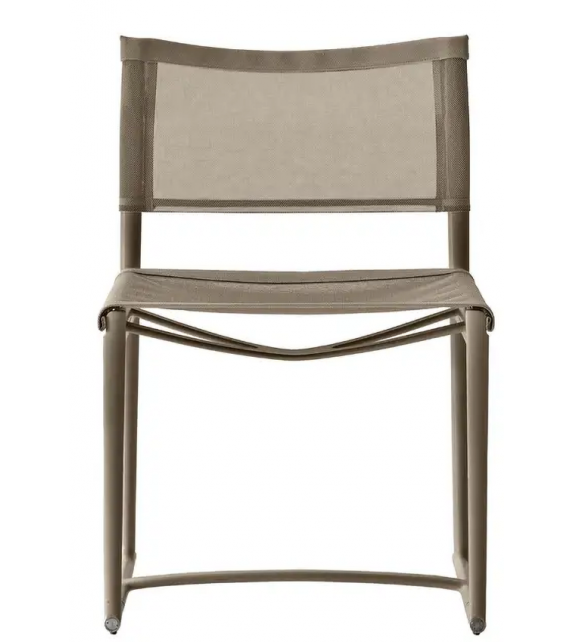 Mirto designed by Antonio Citterio for B&B Italia Outdoor is a chair with structure in die-cast aluminium and extrusions with polyurethane painting, seat and back in Stige mesh in Batyline® Canatex in white or tortora colour and edges in Batyline® Keops, tortora colour.