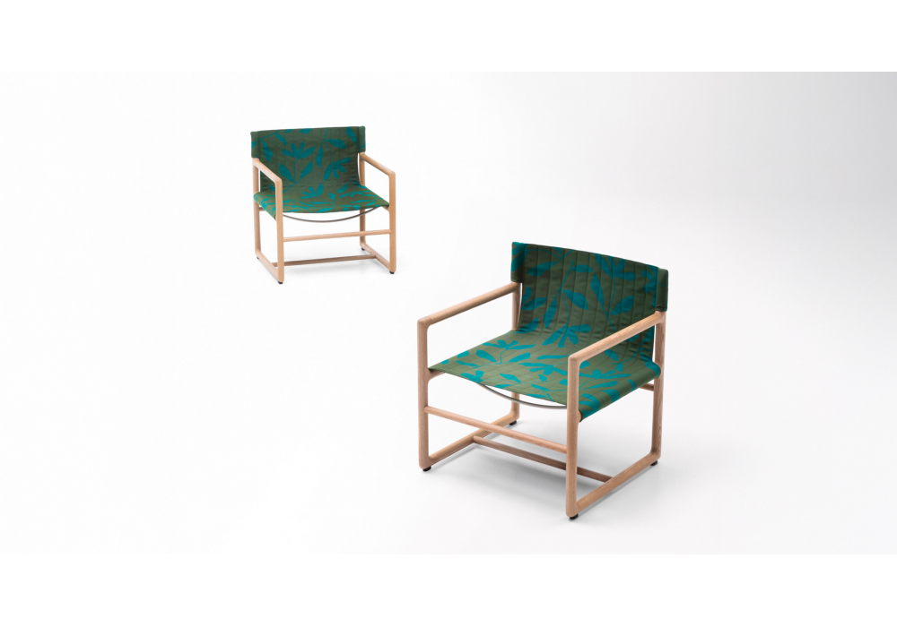 Salina designed by CRS for Paola Lenti is an outdoor chair with a natural sassafras wood structure treated with a water-repellent, oil-based finish. Removable fabric cover. Covering available with or without vertical quilting.