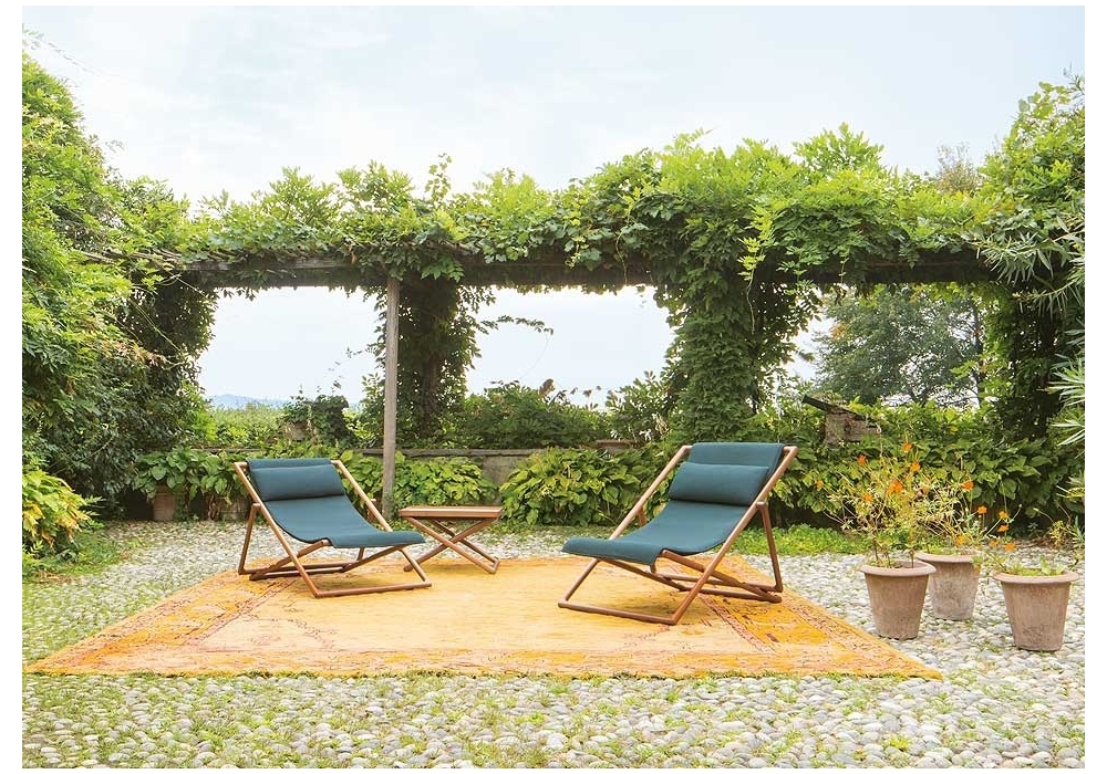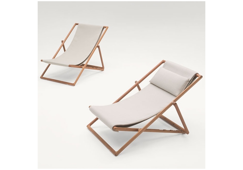 Portofino designed by Vincent Van Duysen for Paola Lenti is a beautiful deck chair available in 2 sizes. Folding structure made of locust heartwood available natural or stained dark. Removable upholstery in Madras or Tamil fabric. The Portofino series has been awarded the GOOD DESIGN AWARDS 2016 in the Furniture category.