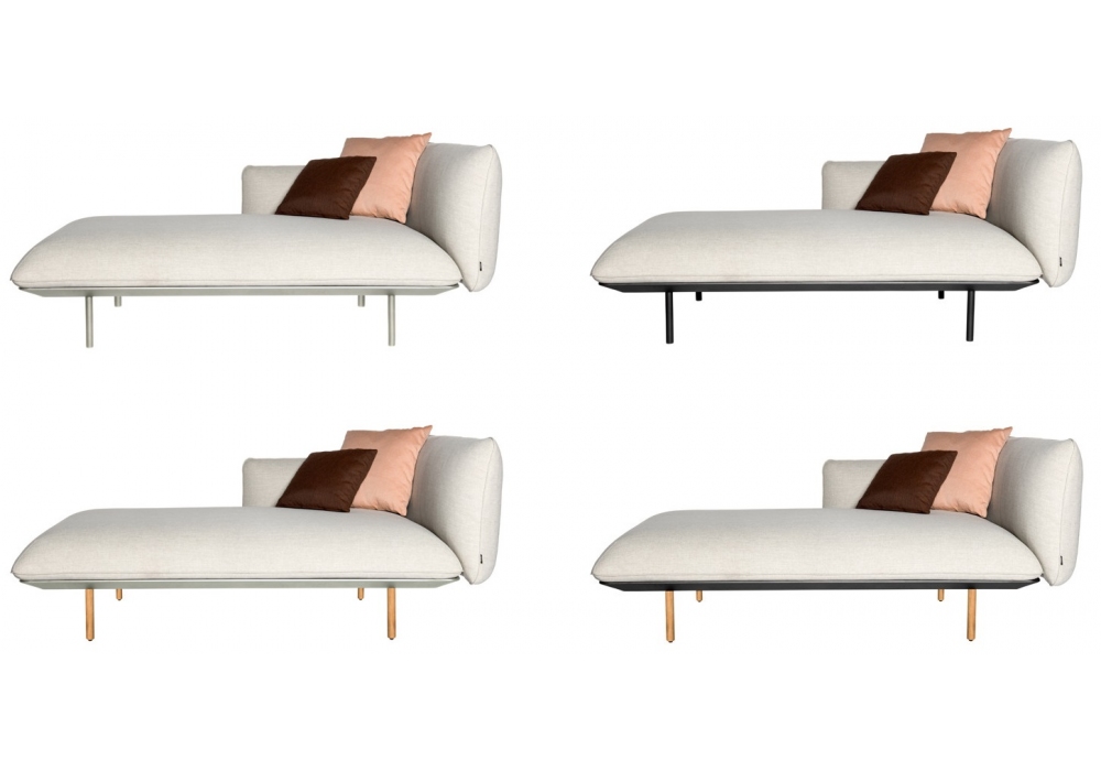 Senja designed by Studio Segers for Tribù is a meridienne/chaise longue with powder lacquered aluminium structure. Filling made of water-repellent polypropylene and upholstery in water-resistant fabric. Available in 4 versions. Perfect to match the sofa of the same collection.
