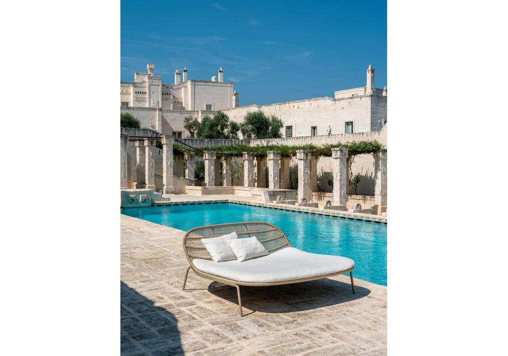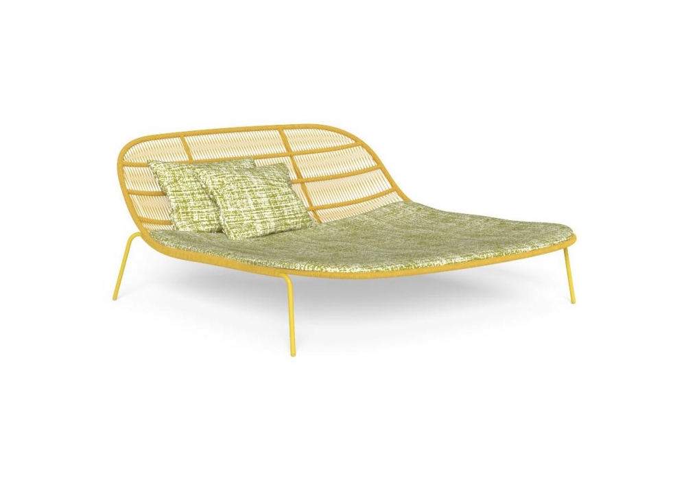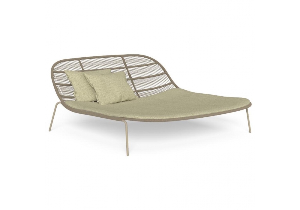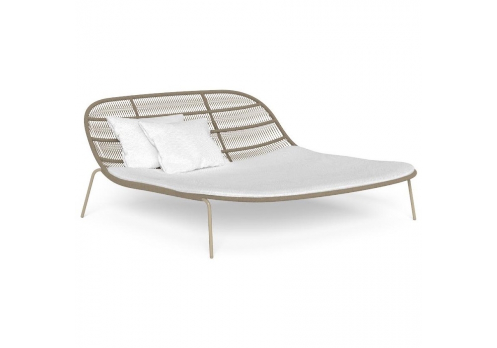 Panama designed by Ludovica and Roberto Palomba for Talenti is a daybed with aluminum structure woven with synthetic nautical rope available in various colors, cushion in various finishes.