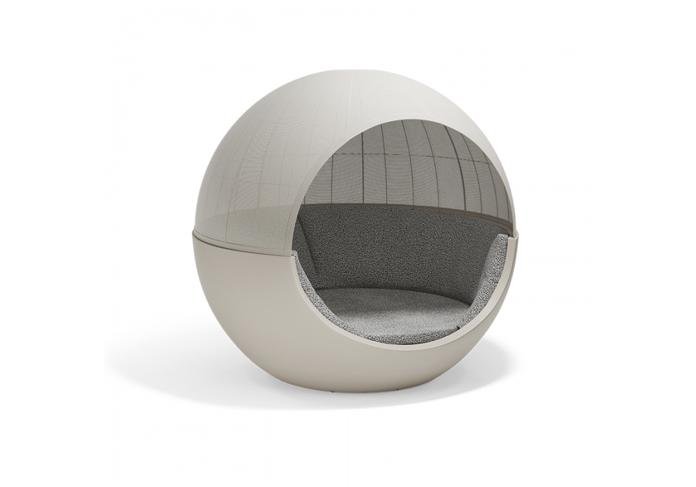 Moon designed by Ramón Esteve for Vondom is a daybed by circular shape with rotating system on which its base rests, which allows the piece to rotate on its own axis. Articulated through two hemispheres, the base is made of rotational moulded polyethylene with the possibility of LED backlighting, while the parasol is made of fabric. Moon is an ideal piece for leisure or chill-out environments.