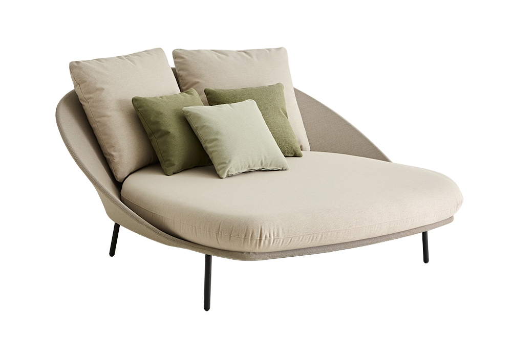 Twins designed by MUT Design for Expormim is an outdoor double chaise longue made of high resistance aluminum base tube. Possibility of customization through a wide variety of technical fabrics completely suitable for outdoor use.