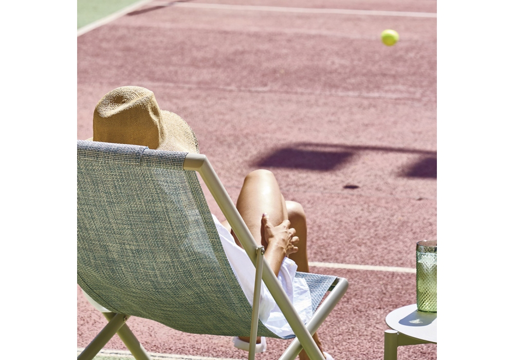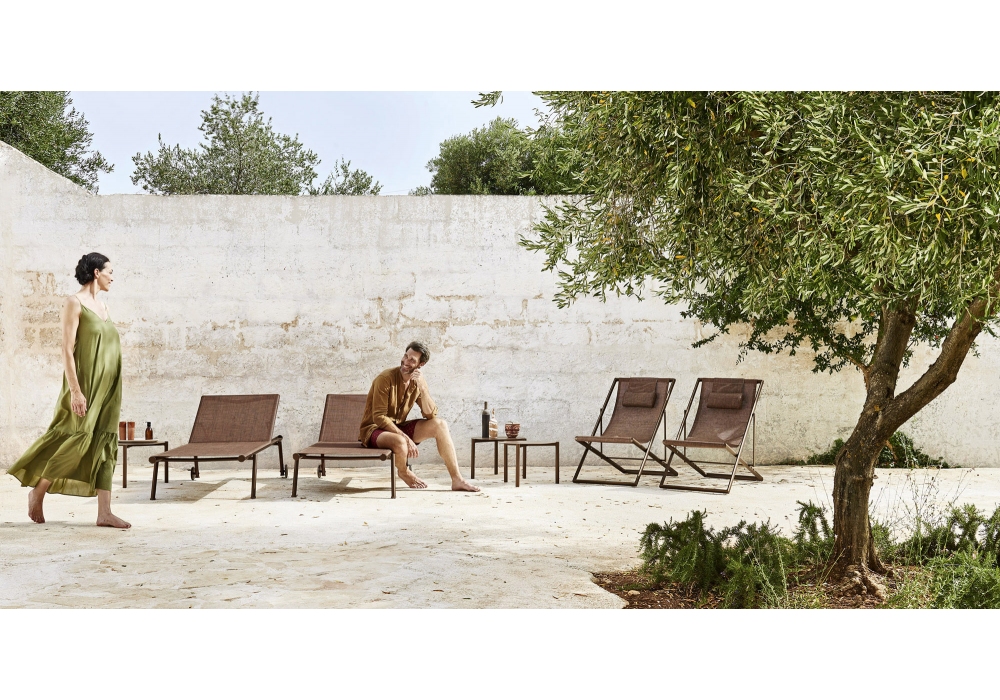 Clever designed by R&D for Varaschin is a folding deckchair with powder coated aluminum structure, seats and backrests in VAR#TEX (PVC technical fabric). Integrated headrest included.