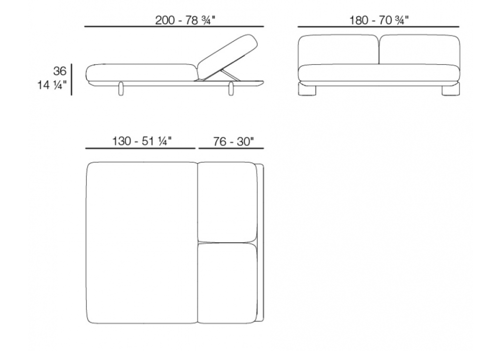 Milos designed by Jean Marie Massaud for Vondom is a daybed made with polyurethane foam padding, iroko wood feet and fabric upholstery. Lacquered aluminum structure.