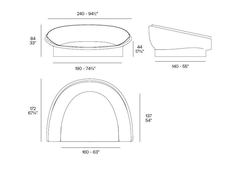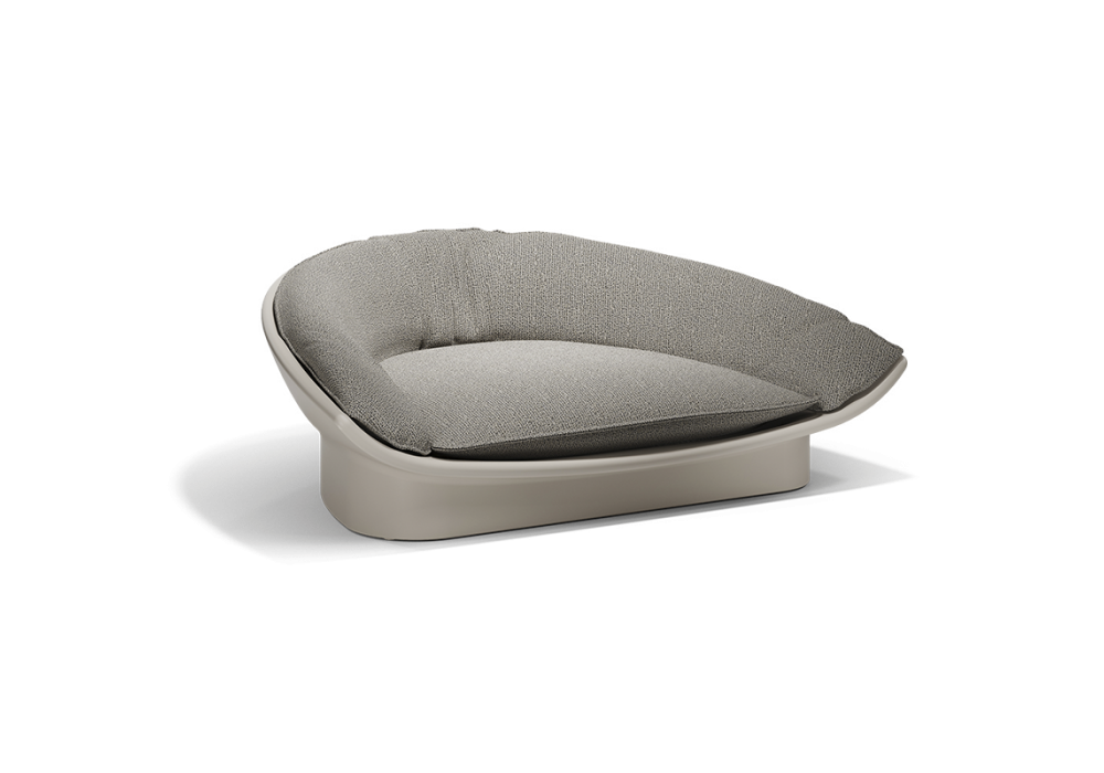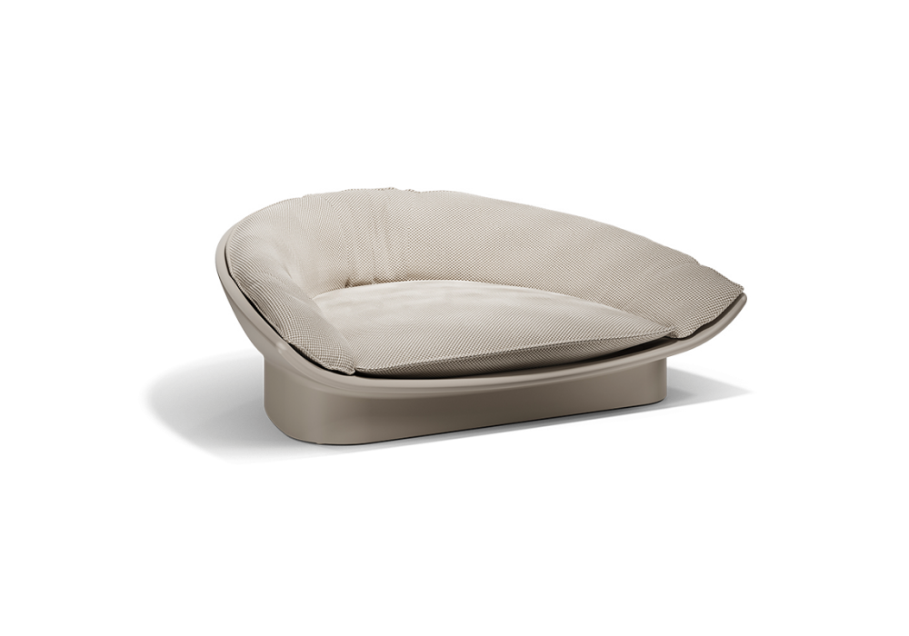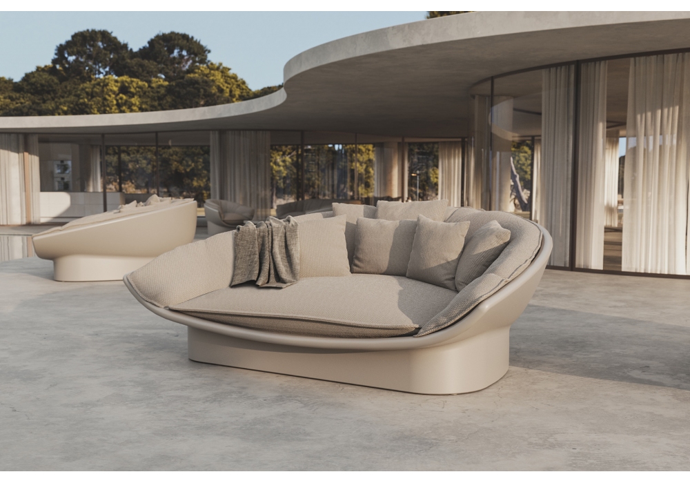 Luna designed by Ramón Esteve for Vondom is a daybed made of 100% recyclable rotationally molded polyethylene resin and cushions with high-density polyurethane foam and synthetic fiber padding. Fabric upholstery. Available in different finishes.