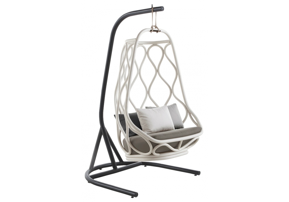 Nautica Outdoor designed by Mut Design for Expormim is a suspended armchair made of high-resistance aluminum tube. Frame and base available in different finishes.