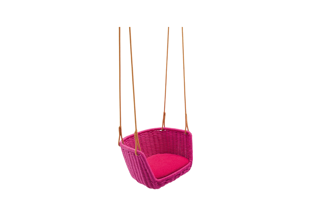 Adagio designed by Francesco Rota for Paola Lenti is a suspended seat with steel structure and fixed woven cover, removable and removable seat cushion and suspension cords covered in Rope yarn. Available in different color variations.