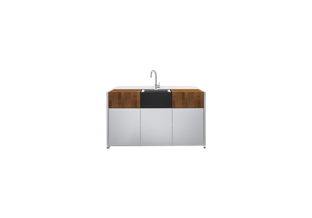 Kitchen Island designed by Broberg & Ridderstråle for Röshults is a modular outdoor kitchen made in stainless steel.