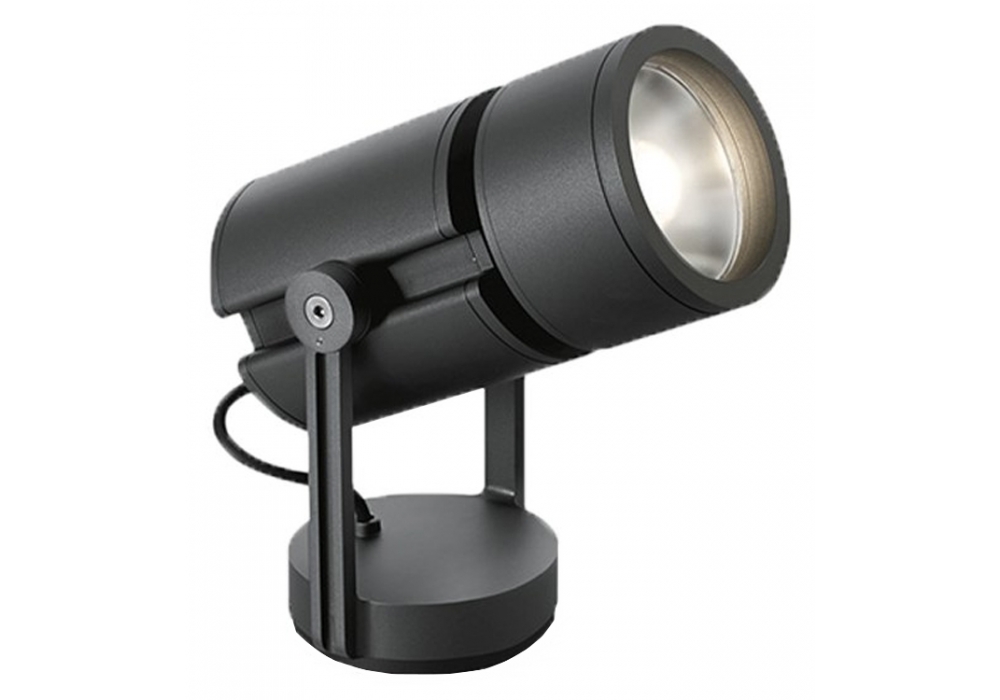 Cariddi 40 designed by Ernesto Gismondi for Artemide is an outdoor lamp that can be applied to walls, ceilings, ground or cornices. The entire structure is made of anthracite gray painted aluminum with an adjustable cylindrical projector. The diffuser is made of methacrylate and shields a LED-type light source protected by a tempered glass plate. Cariddi 40 is available in different shades of light beam.
