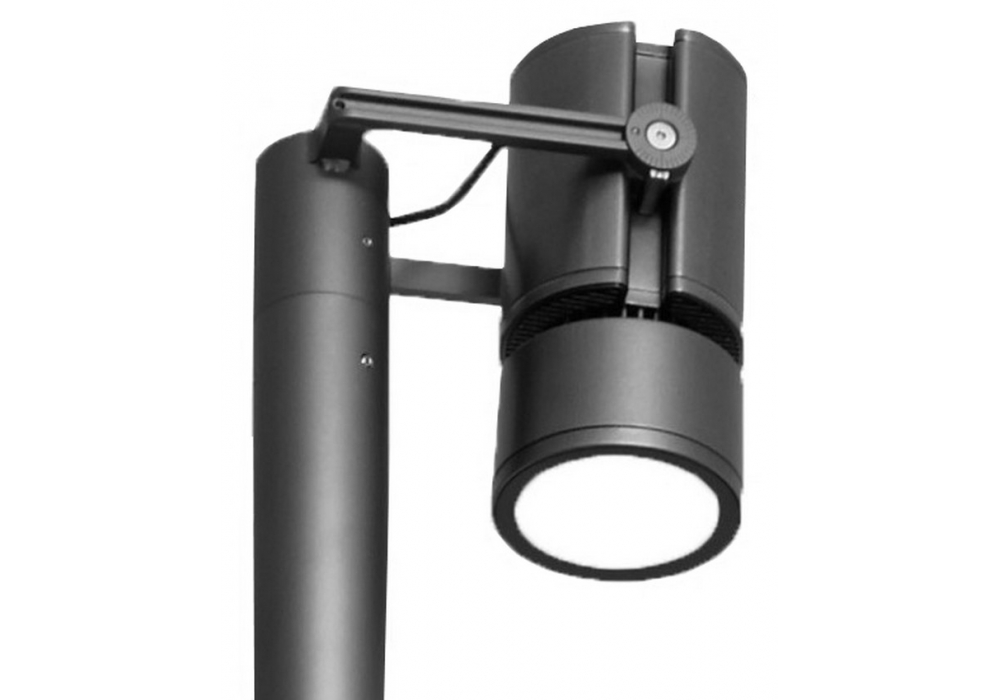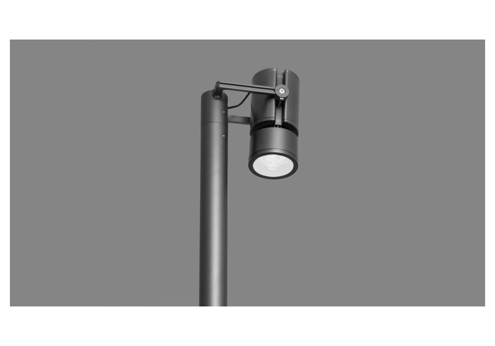 Cariddi Palo designed by Ernesto Gismondi for Artemide is an outdoor floor lamp with anthracite gray painted tubular aluminum structure. The diffuser is made of methacrylate and shields a LED-type light source protected by a tempered glass cover.