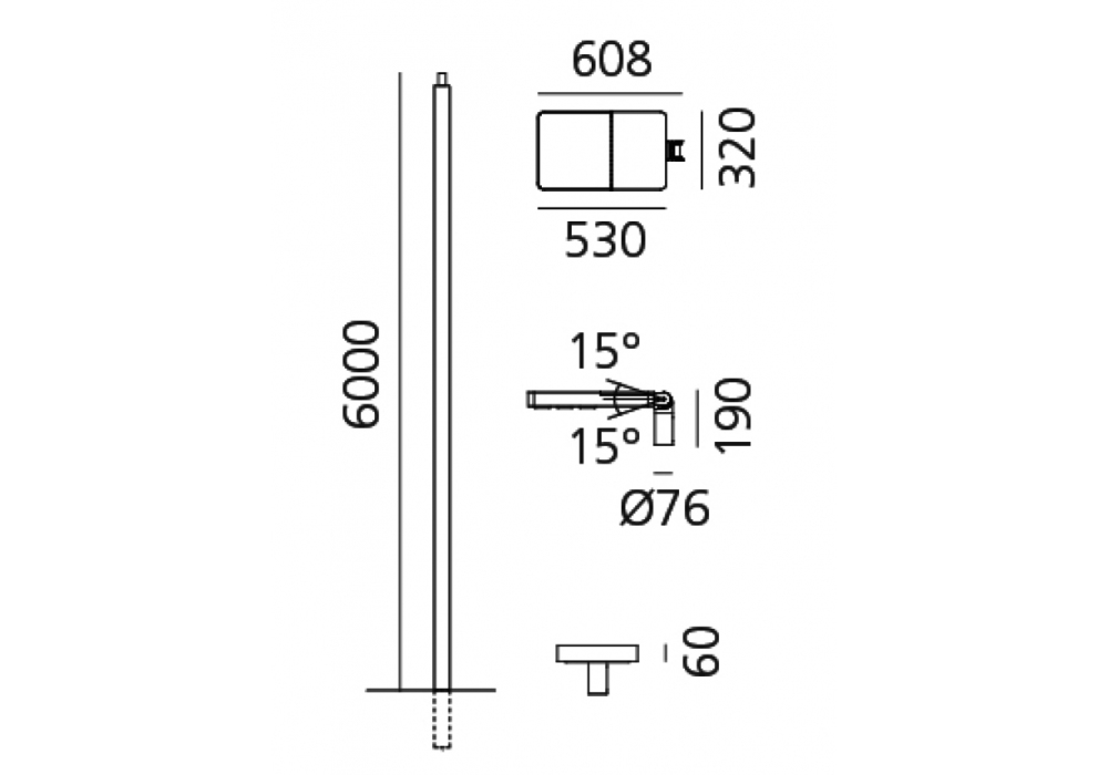 Sostituto Palo designed by Ernesto Gismondi for Artemide is an outdoor floor lamp for installation on a pole (not supplied). Consisting of an aluminum lighting body and adjustable pole attachment with angles of 5° up to 90° for use with horizontal terminal poles. Highly transparent polycarbonate screens with integrated LED, power supply kit included.