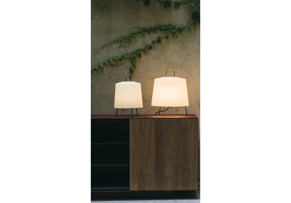 Mia designed by Michel Charlot for Kettal is a table lamp with a manganese-colored painted aluminum structure. Mia is available in different versions and sizes.