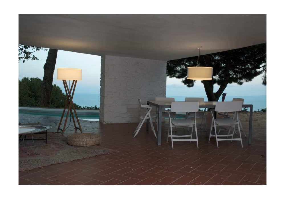 Cala Outdoor designed by Joan Gaspar for Marset is an outdoor floor lamp with iroko wood structure and polyethylene lampshade.