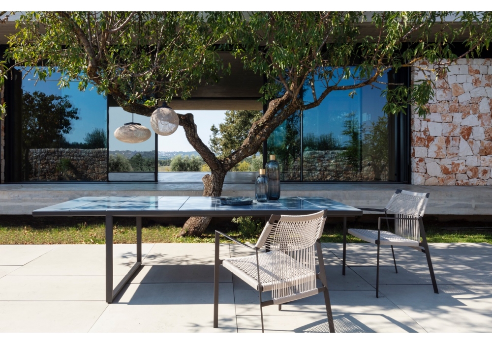 Monsieur Ellipse designed by Ilia Eckardt for Tribù is an outdoor suspension lamp with removable polypropylene cover, available in different colours. LED lighting.