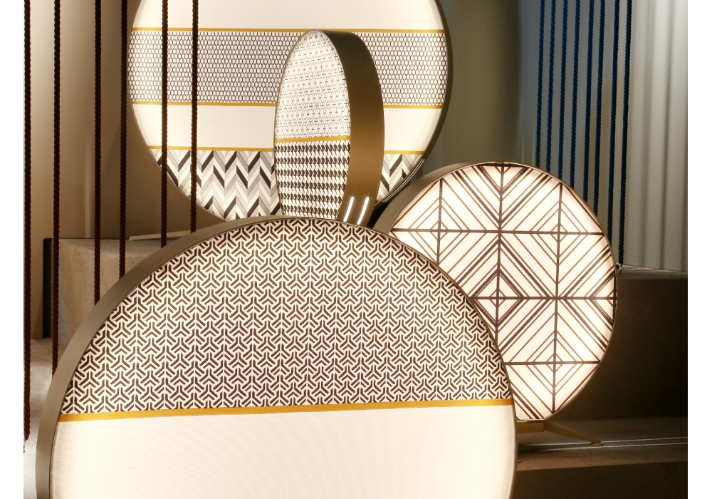 Babu designed by Massimiliano Raggi for Contardi is an outdoor floor lamp with base and structure in champagne lacquered steel with marine cataphoresis treatment. The front and back are made with Sumbrella fabric and velvet trimmings for outdoor environments. The light sources adopted are LED Strip types. This lamp is available in three sizes. Babu is available in different sizes and fabric finishes.