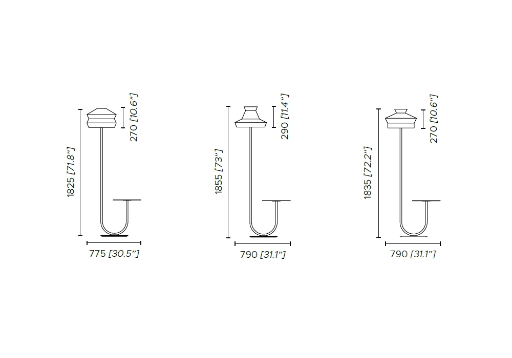 | Dimensions | Ø 39 x H 182,5 cm; 77,5 x 39 x H 182,5 cm. |