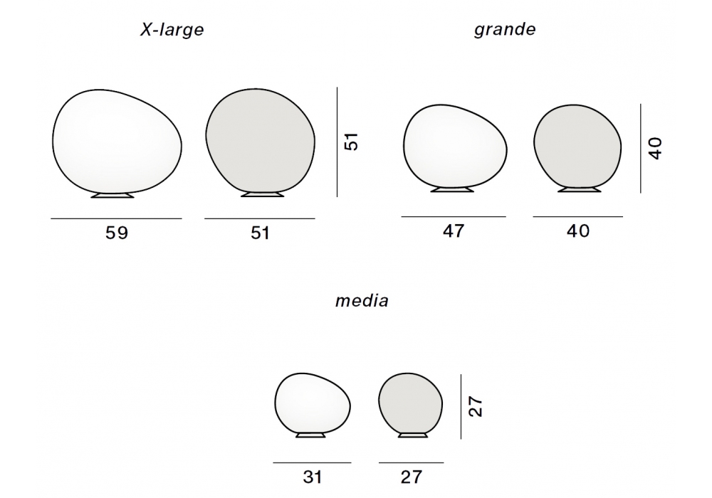 Dimensions 59 x 51 x H 51 cm (X-Large); 47 x 40 x H 40 cm (Large); 31 x 27 x H 27 cm (Medium).