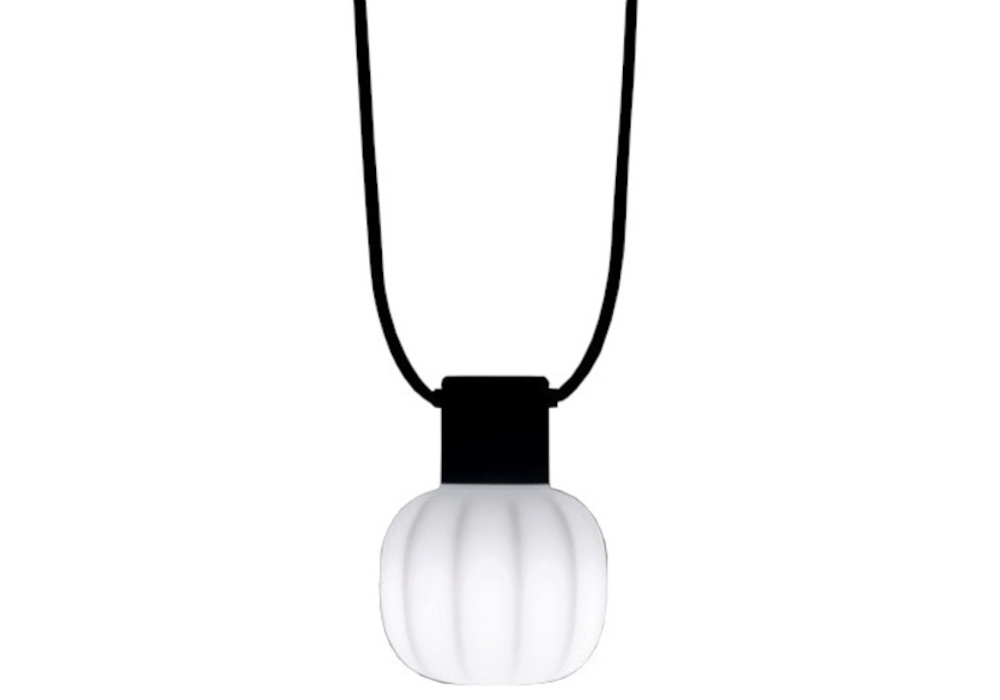 Kiki designed by Paola Navone for Martinelli Luce is an outdoor pendant lamp. The lamps are circular in shape with a black resin and rubber structure supported by a stainless steel cable. The diffuser is in polyethylene and screens a LED light source with E27 plug. Kiki is available in different versions.