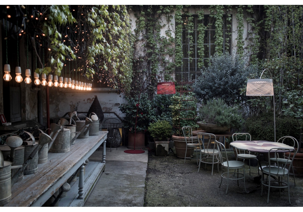 Twiggy Grid designed by Marc Sadler for Foscarini is an outdoor floor lamp with composite material bearing structure on a fiberglass, metal and painted aluminum base. The lampshade is in perforated composite material with a diffuser in polycarbonate. The light source adopted is of the LED type with on/off system. Twiggy Grid is available in different finishes.