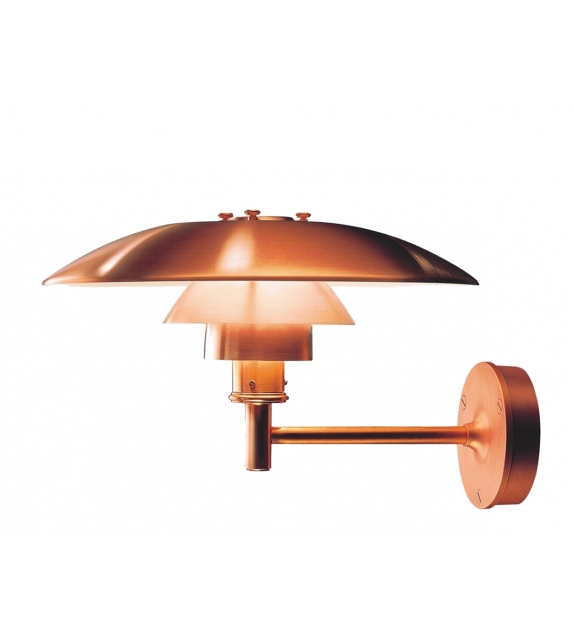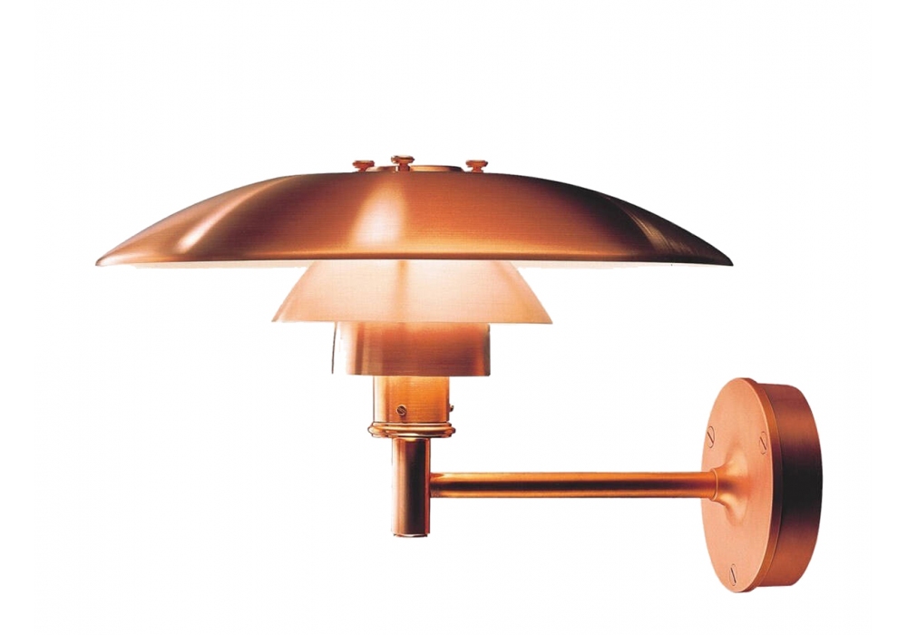 PH designed by Poul Henningsen for Louis Poulsen is an outdoor wall lamp with supporting structure in pulled copper. The diffusers are made of copper and shield a LED or halogen light source with E27 fitting.