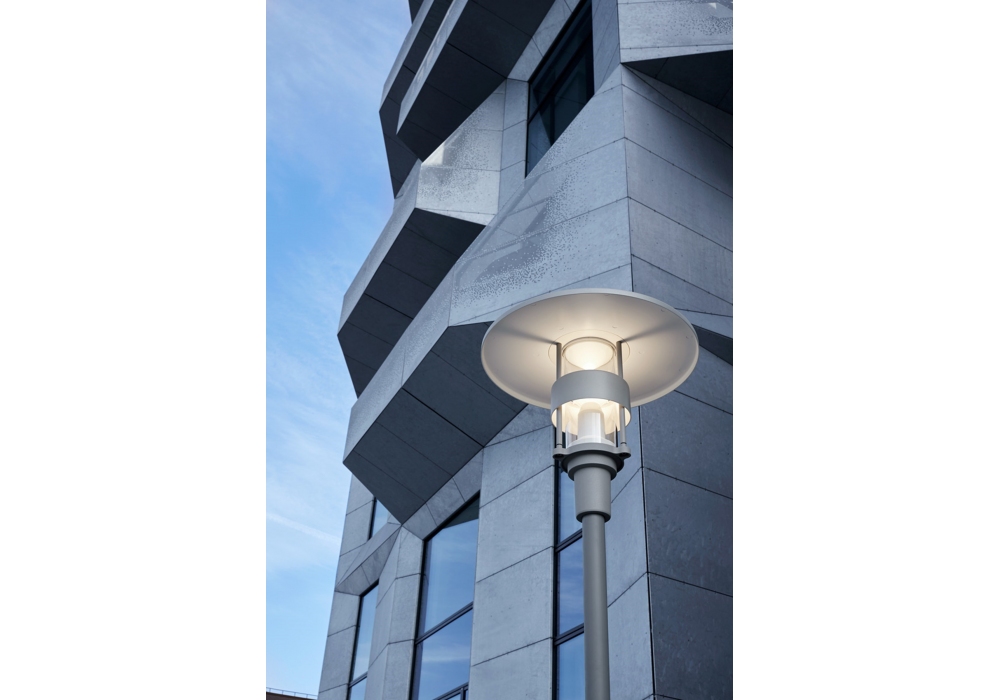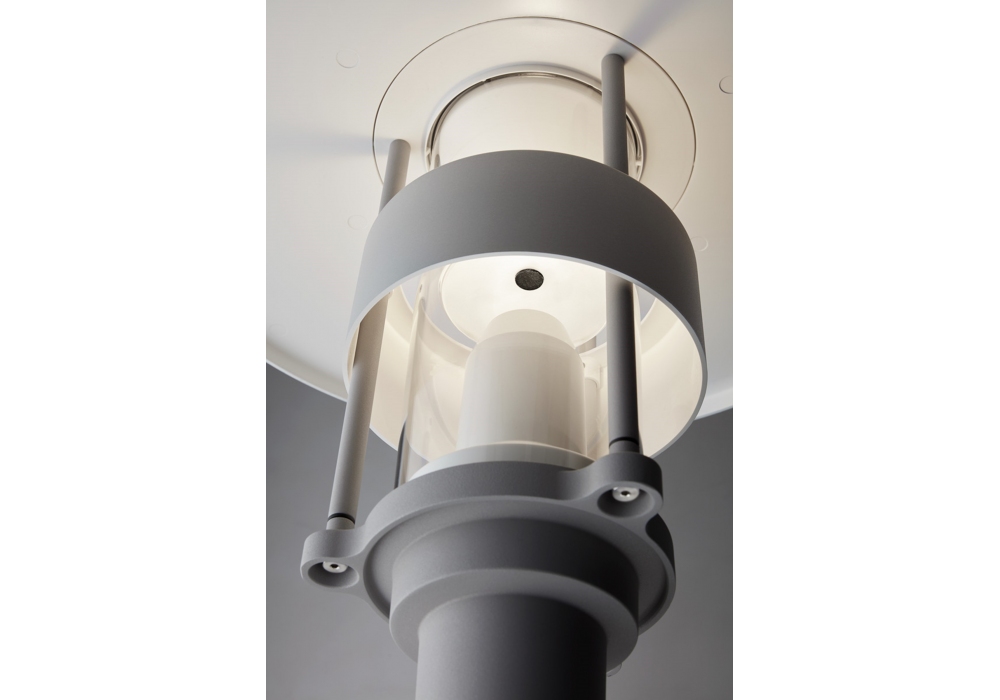 Albertslund Mini designed by Jens Møller-Jensen for Louis Poulsen is an outdoor floor lamp with supporting structure in powder coated die-cast aluminum. The upper screen is in glass fiber while the diffuser is in transparent polycarbonate and adopts a dimmable LED light source in different versions and light gradations. Albertslund Mini is available in different finishes.