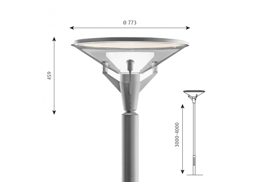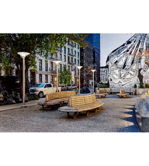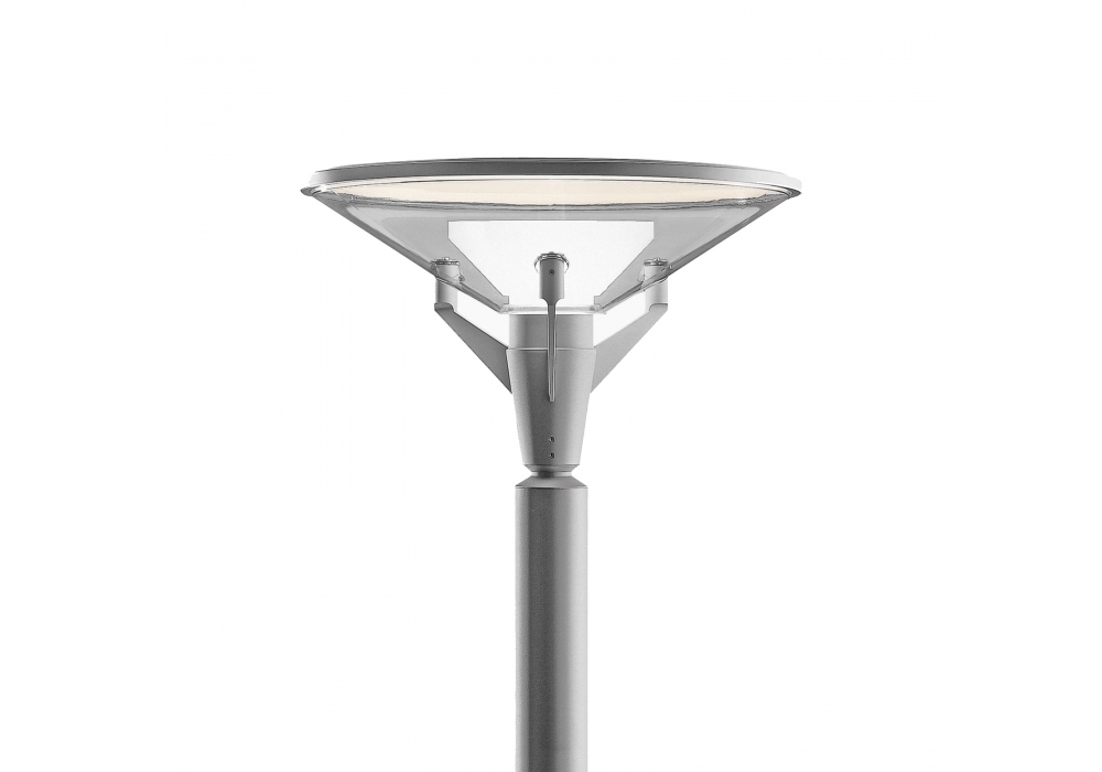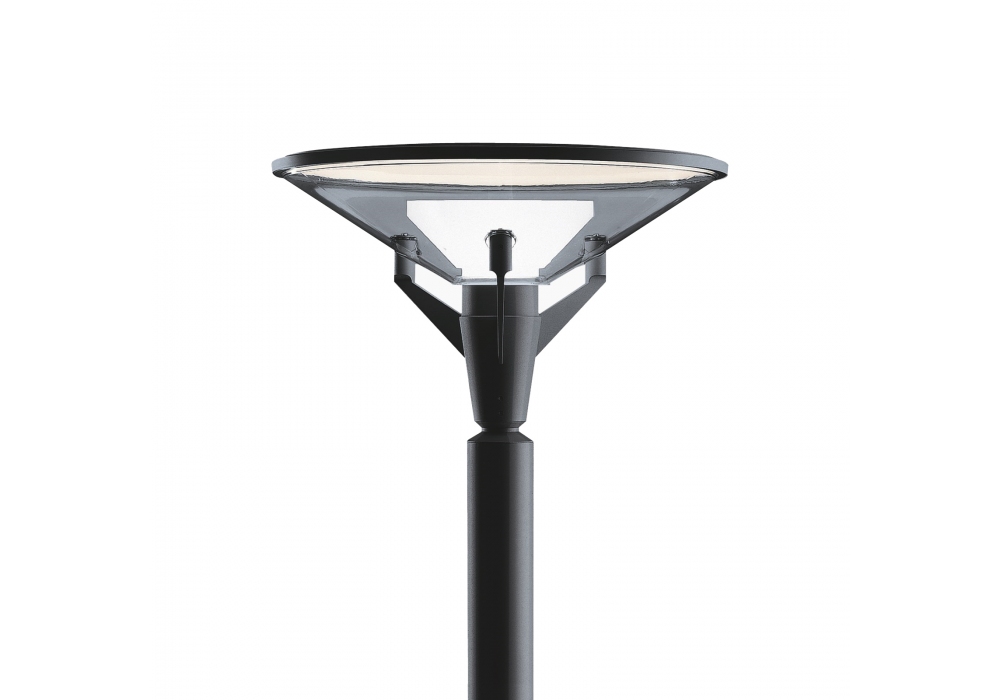 Kipp designed by Alfred Homann for Louis Poulsen is an outdoor floor lamp with powder coated die-cast aluminum frame in different finishes. The upper screen is in white or black ASA while the diffuser is in transparent polycarbonate and adopts a dimmable LED light source in different versions and light gradations.