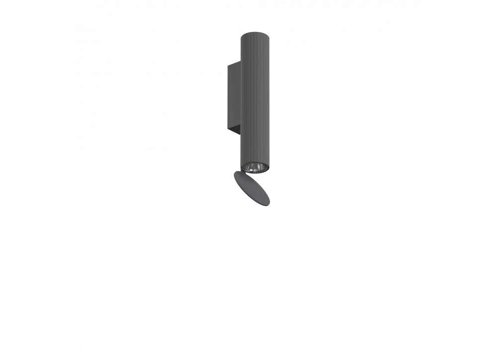 Flauta Riga designed by Patricia Urquiola for Flos is an outdoor wall lamp in aluminum treated with a chemical conversion process for efficient resistance to atmospheric agents. The device is completed by a deflector accessory, painted with the same finish as the lamp body, which can be installed on the upper or lower head at will, to create a decorative effect of reflected light. The body is powder coated. LED light source included. Integrated 220-240V dimmable DALI power supply.